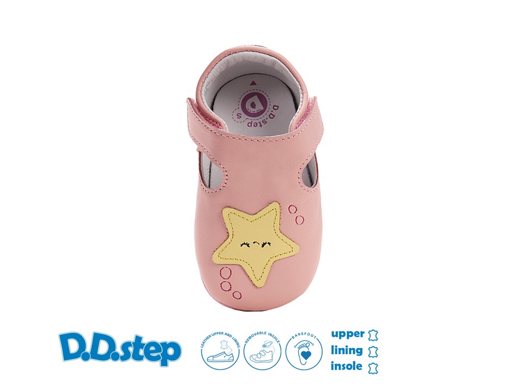 - použité přírodní materiály, testované v české laboratoři - prostorná kulatá špička poskytující dostatečný prostor pro prsty - vyměkčená vnitřní vyndavací stélka - ohebné měkké kožené podešve s proti skluzem ve tvaru loga - zapínání na suchý zip Specifikace materiálu: - svršek - přírodní kůže - vnitřní stélka - kůže